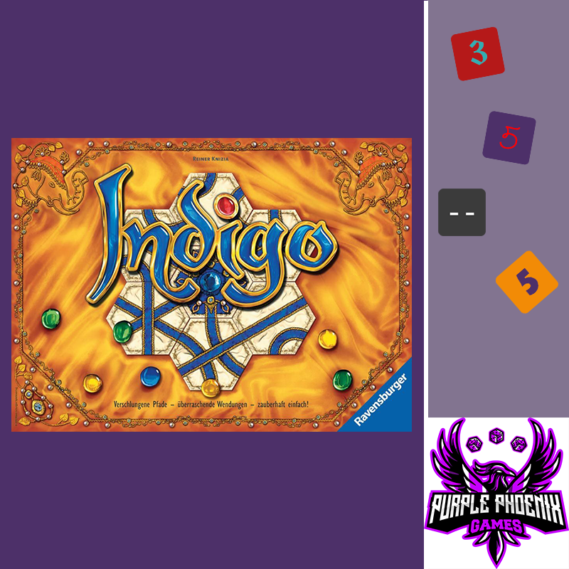 Is Indigo the best strategy game I’ve ever played? No. But it is a fun one that keeps me on my toes. With so many possibilities for routes, and the board changing with every tile placed, players are constantly engaged and active in the game. Purple Phoenix Games gives Indigo a swirly 13 / 18.