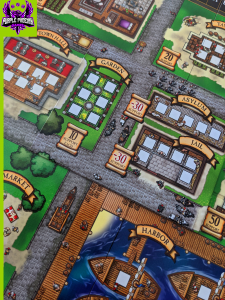 The Palace expansion adds a new mini-board to be placed in the center of the main board, giving more options of locations to control. In addition to the extras already mentioned The Palace also adds the orange and purple player colors, thus cementing its place as the best expansion in this reviewer’s eyes. The Viceroy, Messenger, Mayor, and Constable are added to the bid boards to spice up the bidding phase.