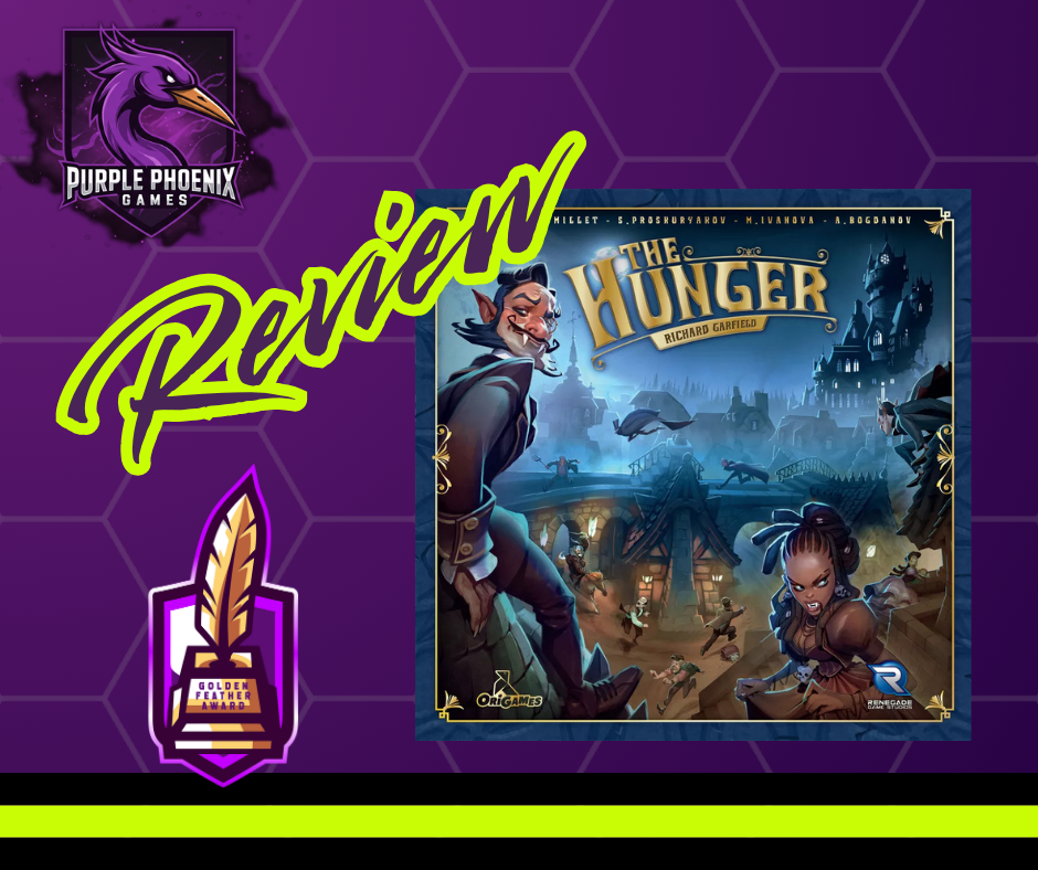 I am currently going through a major culling of my game collection. It has been incredibly difficult. Which games do I keep, which do I ship off? Well I will tell you now that The Hunger will never be leaving my collection. The theme, art, mechanics, and stress are all at peak levels for me and what I need in my collection. With more plays I can see this ascending the ranks, but right now it is not within my Top 10 Games of All Time. Yet, anyway. Purple Phoenix Games does award The Hunger with its prestigious Golden Feather Award for earning a perfect score from us. Well deserved! I only fear one thing – I know I have to sleeve these cards, but I don’t have an extra million sleeves. Guess I’ll sleeve it in chunks. Pick up a copy ASAP and play it for yourself! Stock seems to be okay as of today’s date. Now to get me a copy of that expansion…