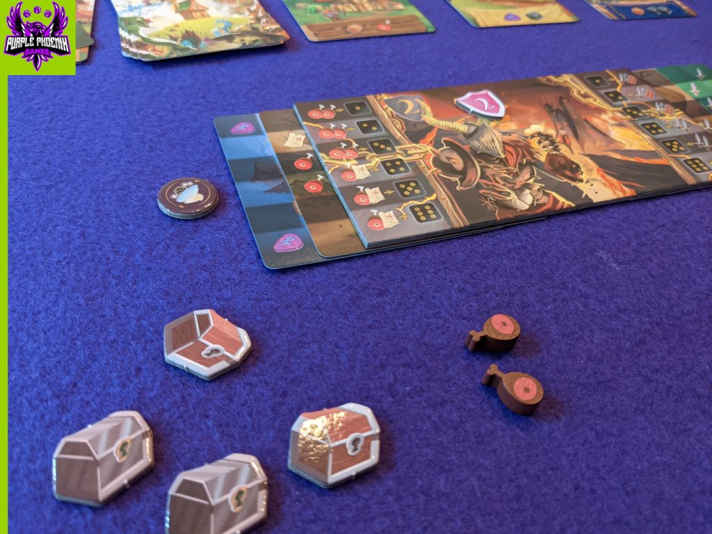 After all these phases have been completed, the End of the Turn phase aptly finishes the turn. Cards are replenished and the new Captain is passed the die. Play continues in this fashion until one player has ten treasure chests at the end of an Attack phase. The player with the most VP from collected treasure chests is the winner!