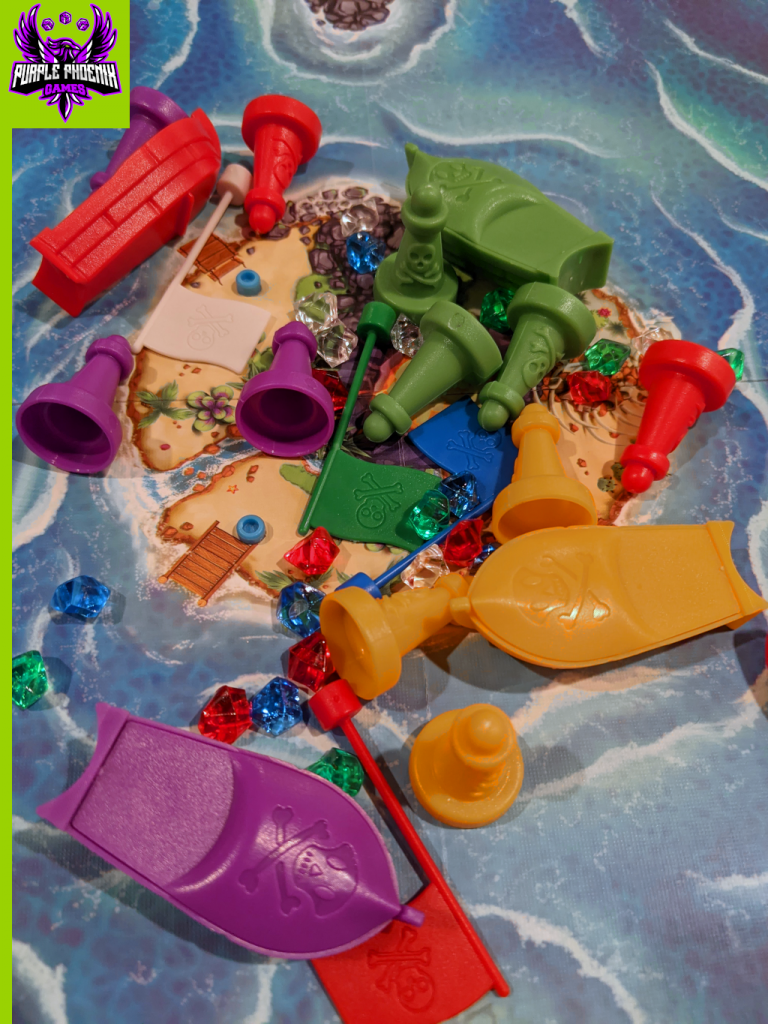 Bermuda Pirates will probably never reach my Top 10 Games of All Time list, but I certainly will hold onto it and cherish it in my collection. I think this game can work with any group of gamers of any skill or experience level. It is simply a joy to play as you push along your little boat hoping upon hope not to run into the whirlpool and have your four gems strewn about the ocean. Or placing the buoys just ever so slightly in the wrong location so that your opponents accidentally run into the whirlpool by trying a tangential approach. My family loves this game, and that is why Purple Phoenix Games gives this a very family-friendly piratey 10 / 12. If you are looking for something light and dextrous, with a great theme and excellent production quality, please check out Bermuda Pirates. It will definitely be a hit with anyone you introduce to it.