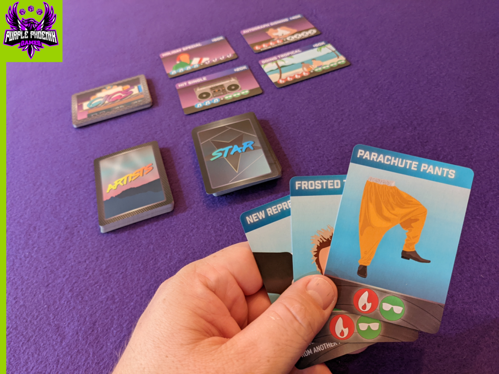 The gameplay here is very intuitive, even though I had a couple questions that were not made clear in the rulebook. You need Star cards in order to buff Boys so they can do Gigs, and making sure that your band has all the right stats to complete the more profitable Gigs. I believe the game lasts an appropriate amount of time; it does NOT overstay its welcome, which is a huge thing for a filler game such as this. I do wish there were more off-the-wall characters like Old Frank and Lil’Hop, and I also wish the Star cards’ backgrounds were a little more interesting to look at, but the game ultimately looks good and plays well too. There are a few extra surprises to be found in the game that I will let our readers discover, including some Take That card that can hinder opponents.
