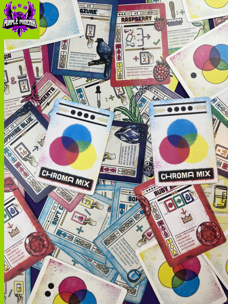 Having been in the board game world for several years now, I see the same themes for games used over and over again. Not saying there’s anything wrong with that, but it happens. So when I come across a game with a unique theme that I’ve never seen before, I get excited. Enter Chroma Mix. When the designer reached out about having us preview this game, I knew I had to try it. A game about mixing ink to create different colors? Cool!