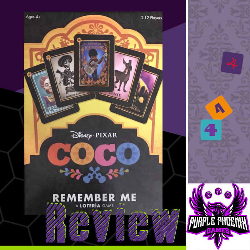 All in all, I’m a fan of Coco: Remember Me. Yes, it is just a themed Loteria game, but it’s a theme that I love. And if you’re not as big of a fan of Coco as I am, that’s ok! The Op Games has a Harry Potter themed version as well (that Travis has too) and plays the exact same way! I would say it’s possible to really theme this game with just about any movie/TV show, and I wonder if The Op Games has any plans to make more different versions. But that’s up to them I guess. If you’re looking for a fun and simple game that can get even your youngest gamers to the table, look no further than Coco: Remember Me. Maybe even turn it into a whole Coco night - watch the movie and then play this game! It’s fun, fast, and engaging for all players, and I would definitely recommend it. Purple Phoenix Games gives this one a solid 12 / 16.