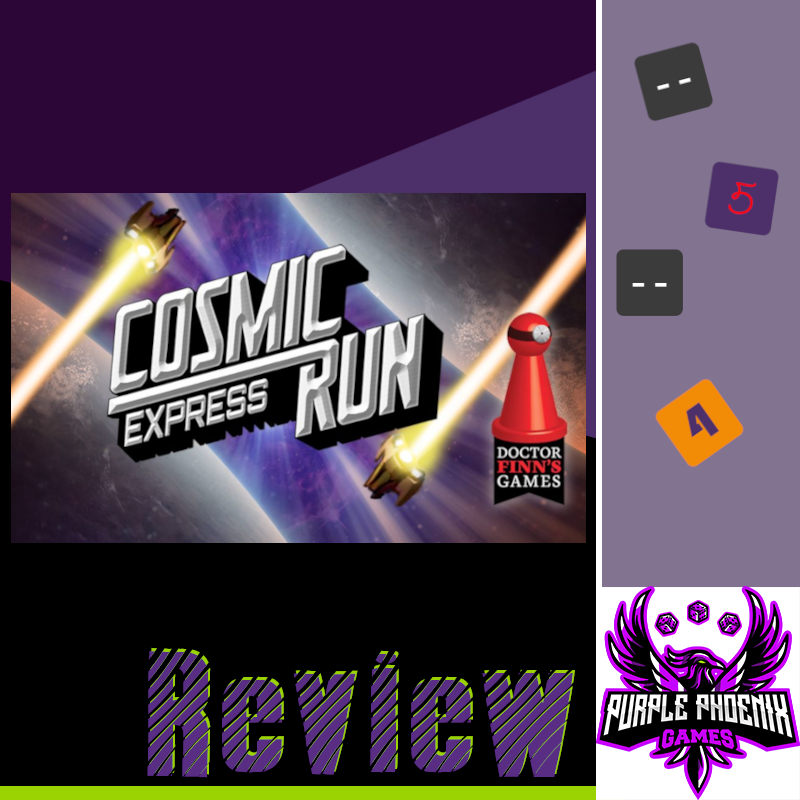 So overall, how do we feel about this game? For being a nice and small 2-player game, it packs quite a punch! I was very pleasantly surprised by the amount of engagement and strategy in this game, and it is definitely one that I want to play multiple times in a row. So mission accomplished, Dr. Finn - in this case, less IS more. It’s a great little card game, and I highly recommend giving it a shot if you’re looking for something small but mighty. Purple Phoenix games gives Cosmic Run: Express a stellar 9 / 12.