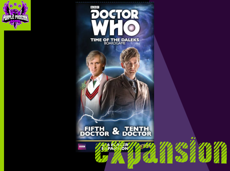 This breakdown is for the now two to six player game Doctor Who: Time of the Daleks and this expansion, Fifth Doctor and Tenth Doctor, from Gale Force Nine.