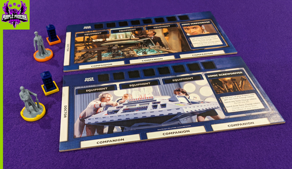 So aside from adding my favorite Doctor and color to the game, along with his IRL father-in-law, and a few new other bits, there is no alteration of any rules or mechanics. You can now, with this expansion, play up to six players, but I do not think more is better with this game. This is the classic, “more of the same.” Well, the TARDIS mats for the new Doctors are rigid cardboard instead of the base game floppy card stock. So that’s an improvement.