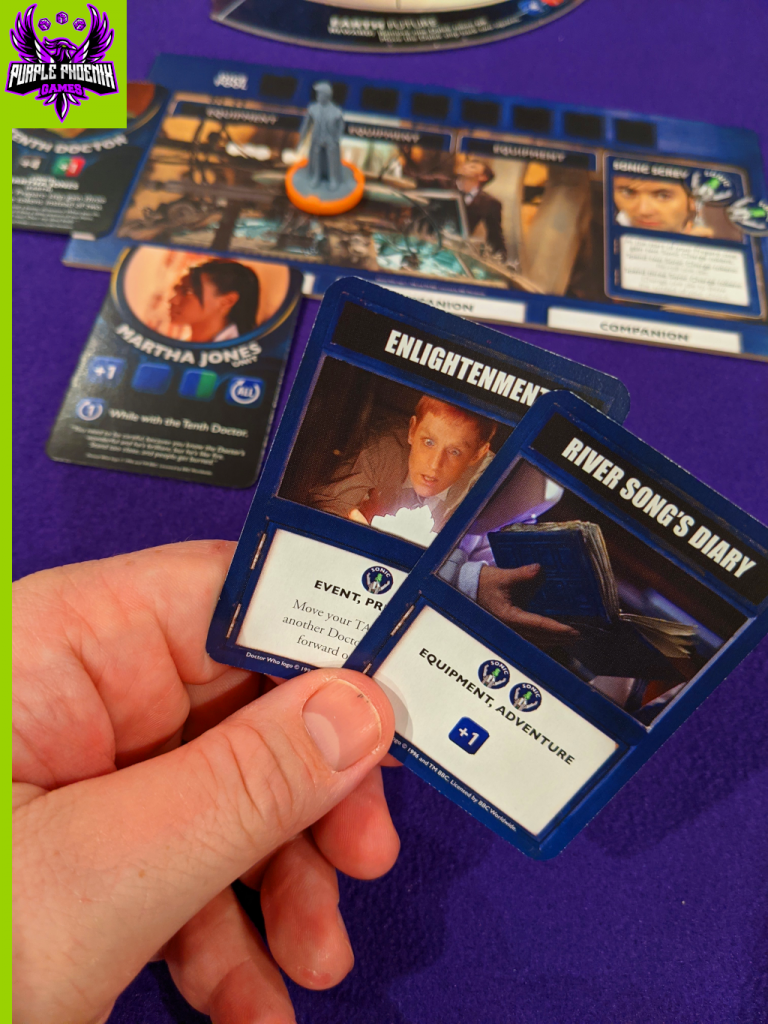 This expansion includes two new Doctors, per the title, and their bits, along with more dilemmas and locations, and new player colors. So now I can finally play my favorite Doctor in orange! It’s Tennant, by the way. THE Doctor.