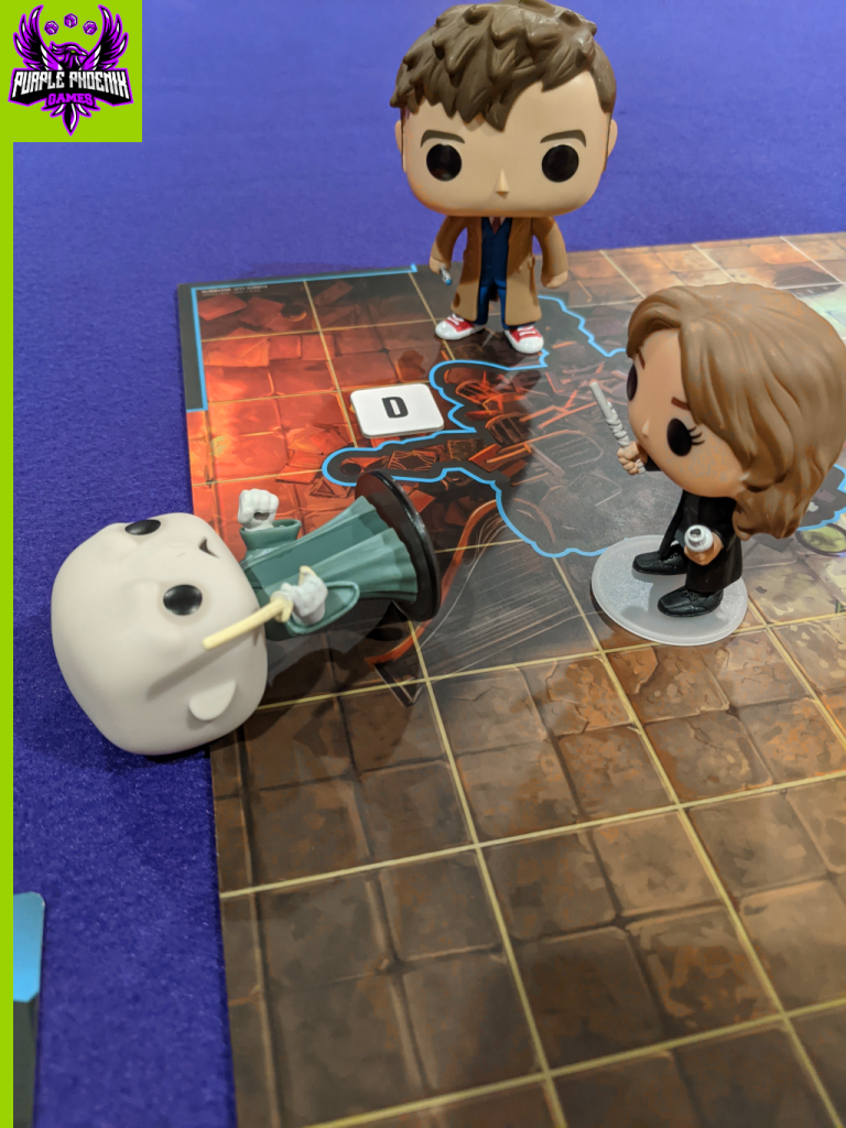 DISCLAIMER: The Tenth Doctor and Dr. Strange are not included in the game, I supplied them. In the box are discs to represent a generic Auror (Ten) and Death Eater (Strange). If you choose to use a supplementary Funko Pop! please know that they may be much larger in size and difficult to maneuver on the board. Also, I will not be detailing every rule in the rulebook as there are just too many. For full rules, download the rulebook today or pick up a copy at your FLGS! -T