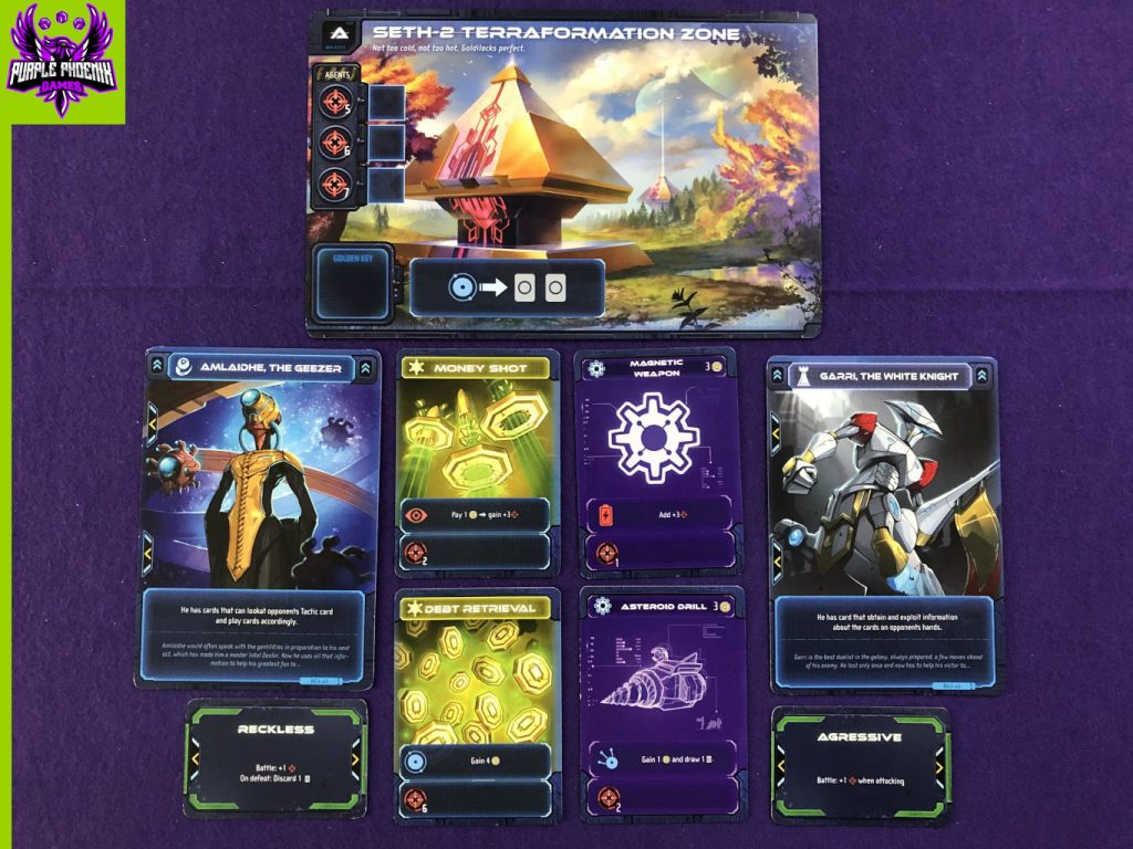 Disclaimer: We were provided with a prototype version of the game for the purposes of this preview. The name and overall theme of the game are slightly different than are presented in these prototype components, but much of the gameplay flows in the same way. What you see pictured are not finalized components, and could differ after a successful Gamefound campaign. -L