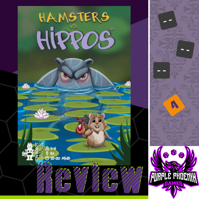 Hamsters vs. Hippos is a press-your-luck tile flipping game where players are cute little hamsterinos escaping the zoo and nearing freedom. However, along the way they must traverse the hippo enclosure. Typically hippos only eat grass, but in this game universe they are attracted to the delectable little rodents and are as hangry as my kids after a day at the playground. The hamster who can collect the most lotus flowers from the hippo lily pads at the end of the game will be the winner and be able to escape the zoo in peace. All other players will be snacked.