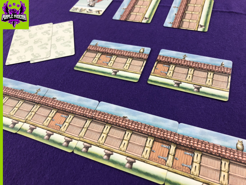 Points are scored in several ways. Most of the hórreo cards are ‘decorated’ with crosses and pikes, and each pair you have in your final hórreo will earn you points. Similarly, the number of doors in your hórreo, as well as adjacent pillars supporting your structure, will earn you points dependent upon the number (the more doors you have, the more points you earn, etc.). As mentioned earlier, you’re trying to keep these pesky rats out of your grain, so any rat pictured on your cards is worth -2 points, but each owl you have pictured eats (cancels out) one rat. And of course, whichever player has build the longest hórreo earns extra points. All points are tallied, and the player with the highest score is the winner!