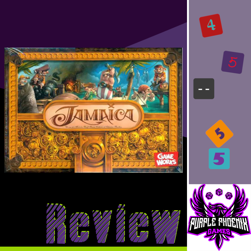 The game is absolutely stunning on the table, easy to pick up and play, and offers so many wonderful memories to be made each time you play. Purple Phoenix Games emphatically gives this one a booty-ful 19 / 24. If you are looking for that niche pirate-themed racing game with treasure stealing and dice rolling, this is it. I have found the perfect game for that slot in your collection. If you are looking for a fun racing game that also includes battles and possibilities of incremental progression, this is it. I can’t speak highly enough about Jamaica, and the only reason it scores a 5 for me instead of a 6 is because I simply cannot play it enough to increase its score. It hits all the buttons for me, but I fear it does not have the wider interest in my group to reach my Top 10.