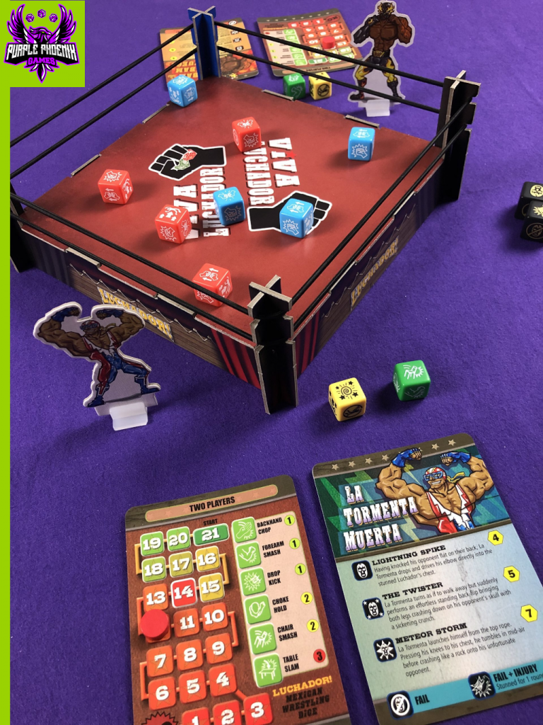 Was Luchador: Mexican Wrestling Dice worth my $5.00 at the Used Game Sale? At that price, I would say yes. But not at a higher price. The gameplay is cute and thematic, but mostly luck-driven and not too strategic unless you play with the Advanced Rules. So although the box drew me in, unfortunately the gameplay isn’t really engaging me too much. It’s a goofy little game, but not one that I really anticipate pulling out on those 2-player game nights - guess it’ll find its way back to the Used Game Sale next year! Purple Phoenix Games gives this one a “Table Slam” score - so a 3 / 6.