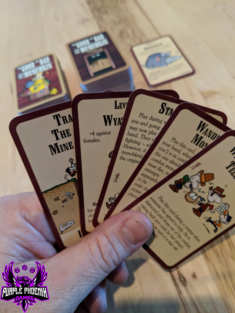 DISCLAIMER: This review is not for a specific game within the Munchkin universe, but for the system as a whole. All Munchkin games will pretty much use similar, if not exactly the same, rules to play the game with minor variations and different theming. I will be using The Good, The Bad, and The Munchkin for my review as it is one of the two versions I still own of the franchise. Also, I will not be detailing every rule in the book(s), but giving a brief overview of how the game plays. -T