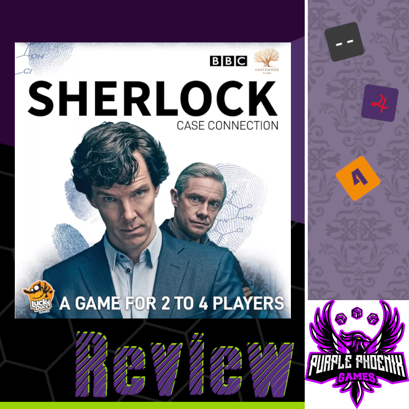 The Direct and Indirect Connections mechanic is new and somewhat interesting, but it only became so after several plays. At first I was just confused as to what I was really supposed to be accomplishing. After I got the hang of it I expected to be more pulled into the game and its experience, but that just didn’t happen. Unlike the chemistry between Sherlock and Molly Hooper, this left me without. If your tastes echo mine, I would like to caution you with any recommendation. I am glad to have played it, but after playing it I do not think I would purchase it. So if you are on the fence about this one, we are in agreement. Purple Phoenix Games gives this one a teetering 8 / 12. I am extremely hopeful that Lucky Duck Games can offer an expansion to the game that either changes or updates some rules or just adds something a bit more interesting. I can see this one gaining more favor in the future, but only if more content is made for it. I fear that it will not happen, though, and may have to switch it out for another that more strongly joins my collection.