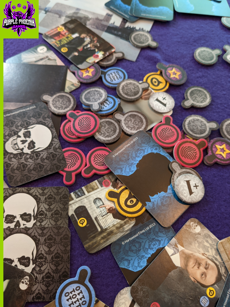 Components. Okay, here is where I start dropping the hammer. As much as I love the Sherlock show, this game features a bunch of screen caps for the cards. So many gamers complain about this kind of decision in other games, so if that is a turn-off for you, then I understand. It never used to bother me until I played this one. I think that I half expected some hybrid of screen cap plus the oft-used Word Art that they employ on the show. I also feel that many of the cards feature screen caps from light tests or photo shoots, which does absolutely nothing for me. The cards are fine, the Location Boards are thin, and the tokens are just uninspired. Usually I am a huge fan of Lucky Duck Games components, but this one is a huge whiff.