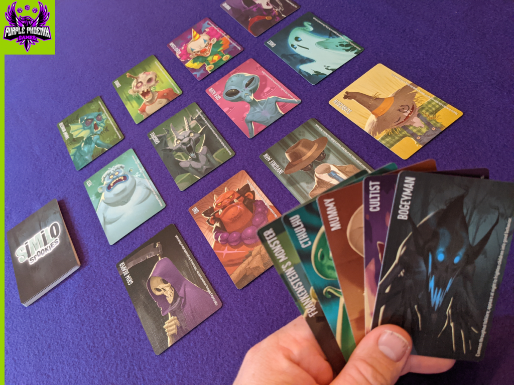 Similo: Spookies (which I will just call Similo from here on out, as they are all basically the same, but with different themes) is a party card game where one player knows information and attempts to persuade the other players to choose the correct character SILENTLY. One game lasts five rounds or less, and many times players will want to play multiple games in a row.