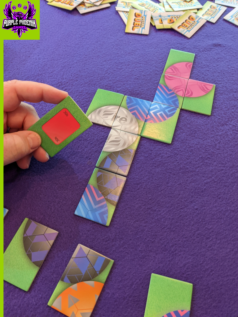 Soccer Duel is a head-to-head real-time tile-drafting game that actually has very little to do with soccer as a sport, thankfully. In it, players are soccer players (I think) that are scoring goals throughout the game. The player with the most goals scored at the end of the game wins!
