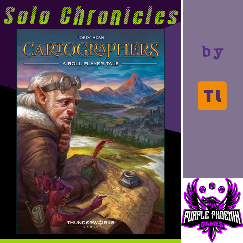 Cartographers is a flip-and-write style game where players are competing to gain the queen’s favor and become the royal cartographer. While the main game focuses on finishing with a greater score than your opponent(s) the solo game is more relaxed. The solo player will be competing against their previous scores and comparing against the queen’s title matrix. Each game will be played over four seasons (rounds) and once the year is over the winner or title is claimed. Can you score 30 or more points to become a “Legendary Cartographer?”