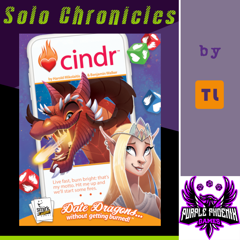 Cindr will probably never make my Top 10 Games of All Time, but it will most certainly remain in my Top 100 for years. Again, I wish I had not missed out on the Kickstarter for this one as I am gluttonous for KS stretch goal extras, but I am quite happy with where this game is at retail level. If you are looking for a great game with a hilarious and wonderful theme, plays quickly, and is excellent as a solo game too, then check out Cindr. You will never look at dragon dating sites the same way again. I promise.