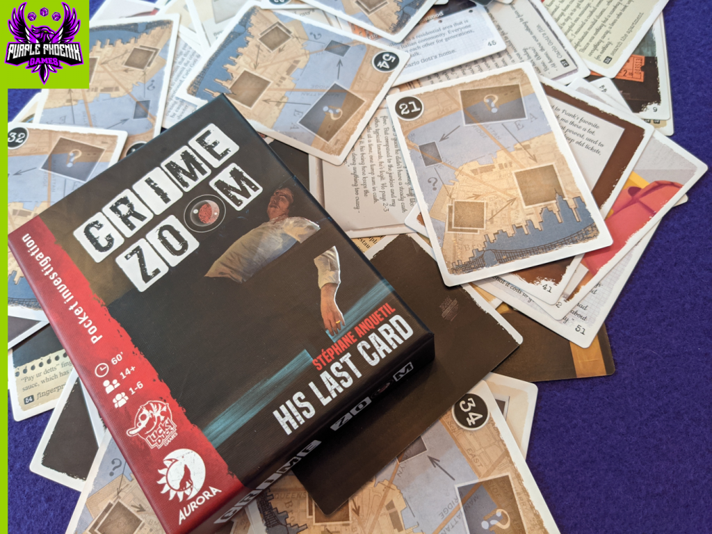 How many times have you felt absolutely confident in your convictions, only to have one tiny piece of information tear down stance and make you feel a little sheepish? It happens to me all too often, especially when playing games. Enter the Crime Zoom series coming soon from Lucky Duck Games. Here I am, thinking I know something, and a deck of cards proves me both right, and very very wrong. This review is for the system of Crime Zoom, and two of its games: His Last Card and A Bird of Ill Omen. But solo.