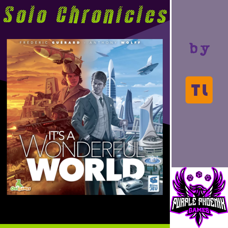 So here’s my recommendation with this one. If you are a fan of 7 Wonders but find it to be difficult to get others into it, check out It’s a Wonderful World. I feel that it is superior in many ways, and the solo mode is just icing. The solo mode gives me a great play experience, even though I typically am not a fan of games challenging you to beat your own high score. I will live with it here because the game is just so enjoyable. While 7 Wonders was my favorite game of all time for quite a while, it has since dropped out of my Top 10, and I think will be replaced entirely by It’s a Wonderful World. If your tastes are similar to mine, then do yourself a big favor and grab a copy of this one right away. It has several expansions out there, and I believe you will fall in love with drafting again. Now, where did I put my Wind Turbines…