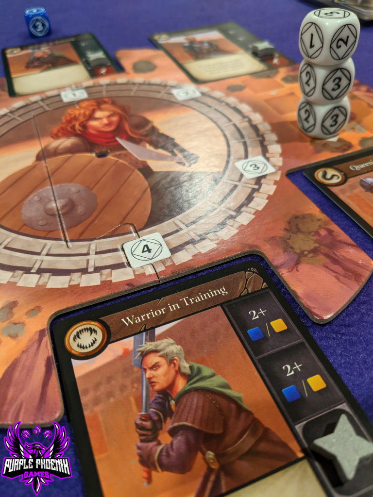 Proving Grounds is a solo fighting dice game with real-time phases. Players will win by defeating eight opponents in battle and will lose (often, in my case) if the heroine suffers too many wounds. The game is played over several rounds, and Renegade has provided an app to act as a timer during the rolling dice phase. Obviously I am terrible at the game, but how does it play and do I feel like continuing to suffer subsequent losses?