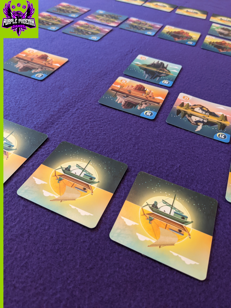 Tranquility is a cooperative hand management, tile placement card game for one to five players. In it players will be attempting to create a sea of islands around which they sail their boat towards infinite paradise. They will accomplish this by laying numbered cards from their hand in numerical order before any of the players run out of chances to play a card. Oh, and there’s also no talking during the game. That’s kind of a big deal.