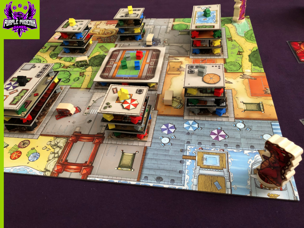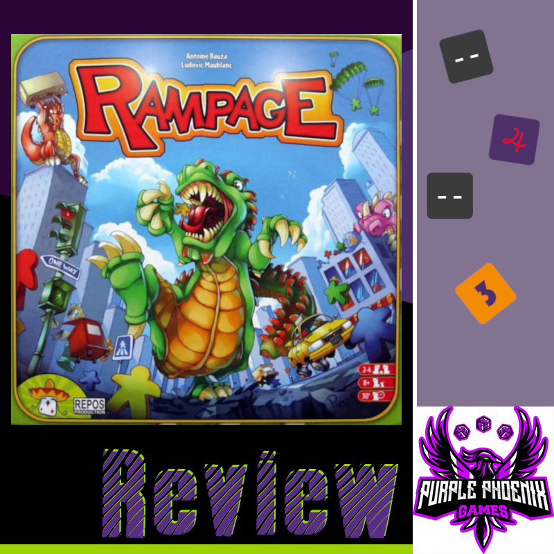 Is Terror in Meeple City my favorite game? No. But it’s one that I’m glad to have in my collection. It works well in so many situations - a gateway game, a light-hearted filler game, a game to get everyone up and moving, and a game that can be played with younger gamers as well. Although it’s not really a brain-burner or a game of high-level strategy, it’s one that still makes for a good time. Purple Phoenix Games gives it a 7 / 12. Give it a try if you’re itching to smash some stuff!