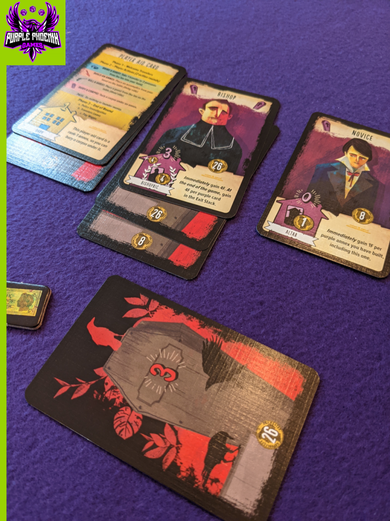I cannot express how happy I am to have decided to purchase this one. I have seen the BGG ratings and rankings, but always thought I wouldn’t like it due to its very adult theme, but boy was I wrong! This is one of the best games I have played recently and I hope to even bling it out a bit, maybe even with new player colors like I suggested earlier. Laura and my wife were able to join me for this one and they agree with me - this one is excellent and definitely worth consideration into anyone’s collection. Purple Phoenix Games gives this one a dastardly 15 / 18. Yeah, it’s perfect for Halloweentime, but also for ANY time. If you are looking for something a little grim and grisly with lighter rules and lots of interesting choices, you need to check out The Bloody Inn. Grab lots of Police cards and go on a killing spree for me!