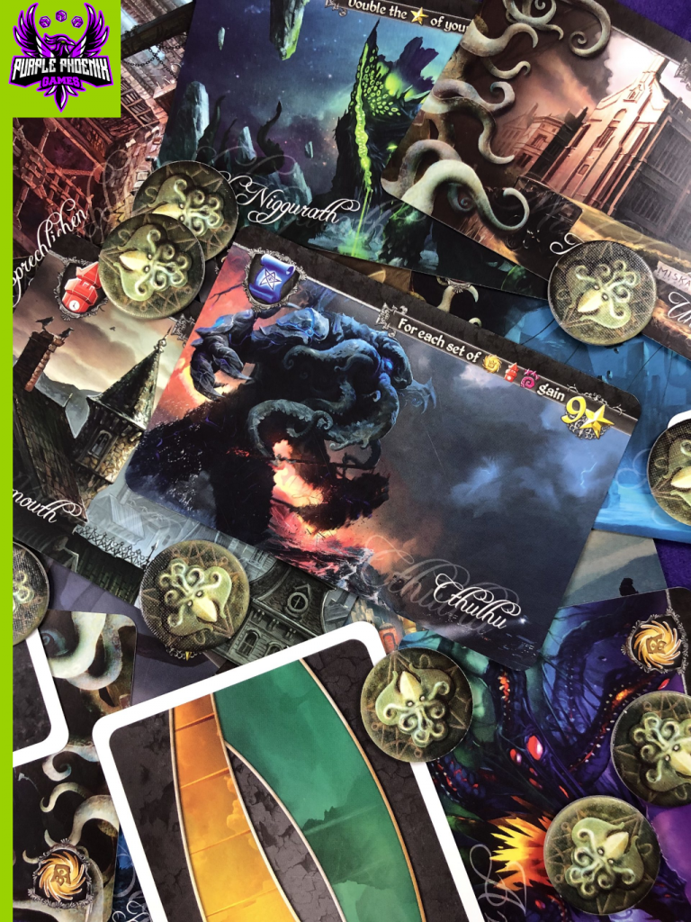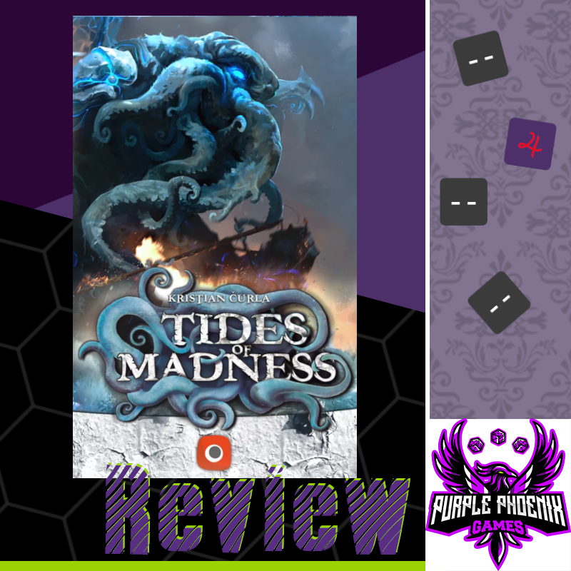 I have to say that of the two, I prefer Tides of Madness over Tides of Time. You may have noticed that I have rated both games at a 4, but the Madness element in this one just pushes it over the top for me. Both are good games, don’t get me wrong! Either work as a good set collection/drafting game, and are quick to learn and play. Tides of Madness just engages me a little more and that makes the overall gameplay more enjoyable for me. So all in all, Purple Phoenix Games gives this one a maddening 4 / 6.