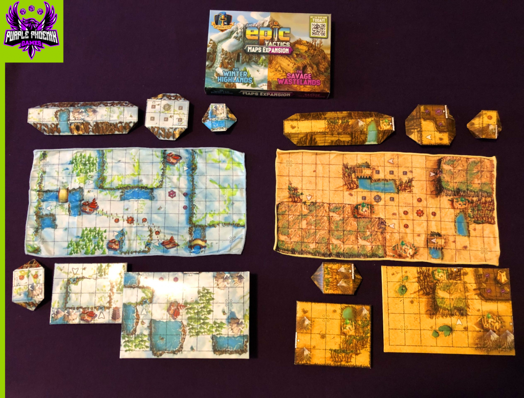 The Maps expansion for Tiny Epic Tactics offers players of the game 2 new locations in which to play: The Winter Highlands and the Savage Wastelands. Although the rules and gameplay are identical to that of the base game, the new locations are set up in different configurations, providing players with a variable setup of sorts with which to play the game.