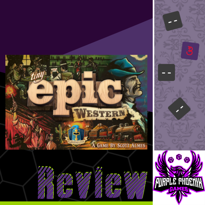 It’s no secret that we at Purple Phoenix Games are fans of the Tiny Epic series. But one that had evaded our reviews until this point was Tiny Epic Western. Admittedly, this one has been sitting on my shelf of shame for quite some time, so I finally decided it was time to take it off the shelf and bring it to the table! After squaring up with TEW, how does it compare to the rest in the series? Is this the rootinest tootinest of the bunch, or should it be bucked off my shelf?