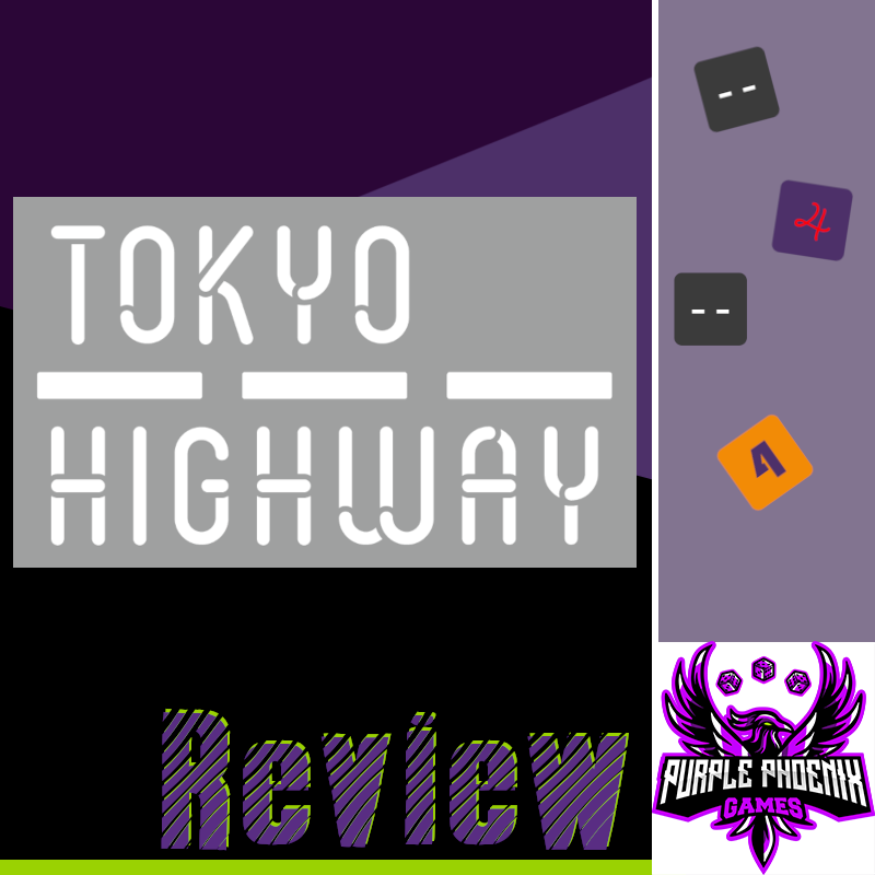 So overall, how is Tokyo Highway? I think it is a game with a nearly perfect balance of dexterity and strategy. You must employ both of those to succeed, because focusing on only one will get you nowhere. It definitely offers more than meets the eye, and that is a fun surprise. There is no set game board or layout, so literally every game will be different, allowing for seemingly infinite replayability. It is definitely a game that keeps players engaged and on their toes. Although there are a few issues regarding dexterity ‘accidents,’ the gameplay overall flows well and is logical. Purple Phoenix Games gives Tokyo Highway a speedy 8 / 12.
