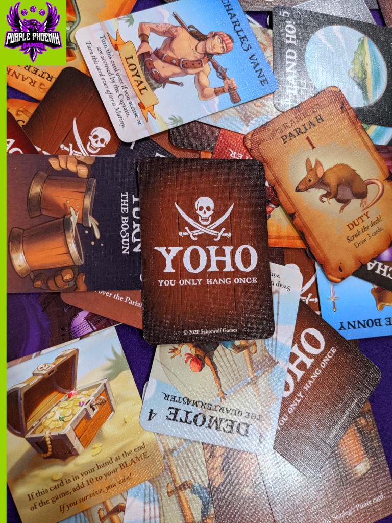 Again, I do NOT recommend playing with two, but definitely do recommend with four. I would be hesitant at three, but it can certainly work. Purple Phoenix Games gives this one a wishy-washy-swashbuckling 8 / 12. If your collection is missing another pirate card game that can be played quickly, has interesting twists, and fresh-feeling mechanics, give YOHO a try. You might finally have the chance to send your rival off the plank. But be warned, despite the title, there is no hanging in YOHO (You Only Hang Once).